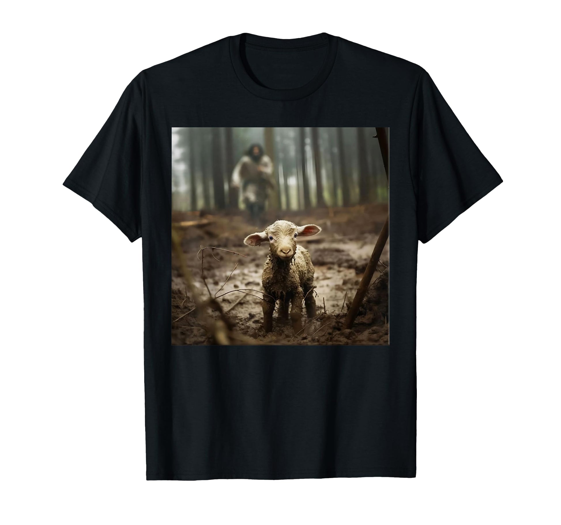 Jesus With The Sheep - Jesus Running After Lamb Art Religion T-Shirt