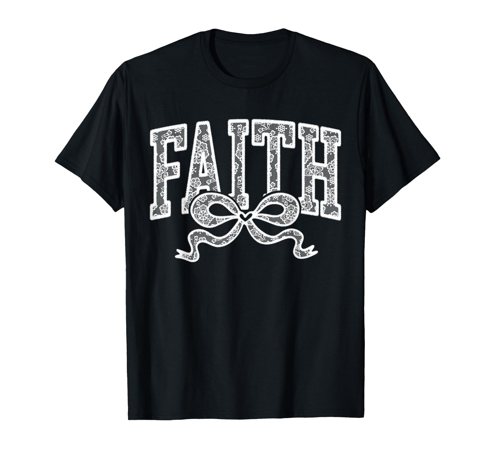 Lace Faith Coquette Bow Christian Religious Women Girl T-Shirt
