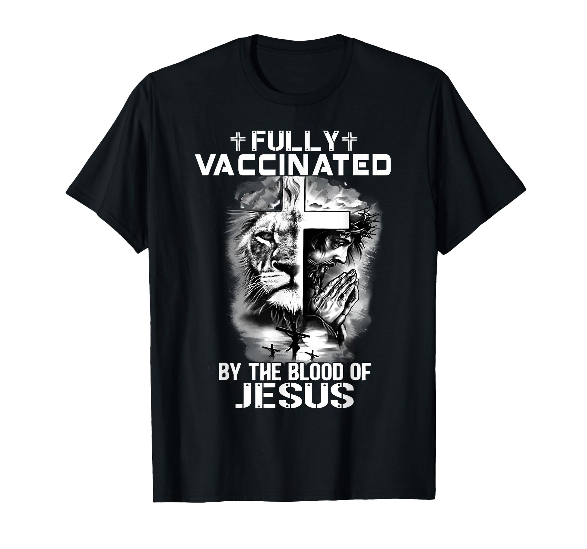 Lion Jesus Cross Fully Vaccinated By The Blood Of Jesus Tee T-Shirt