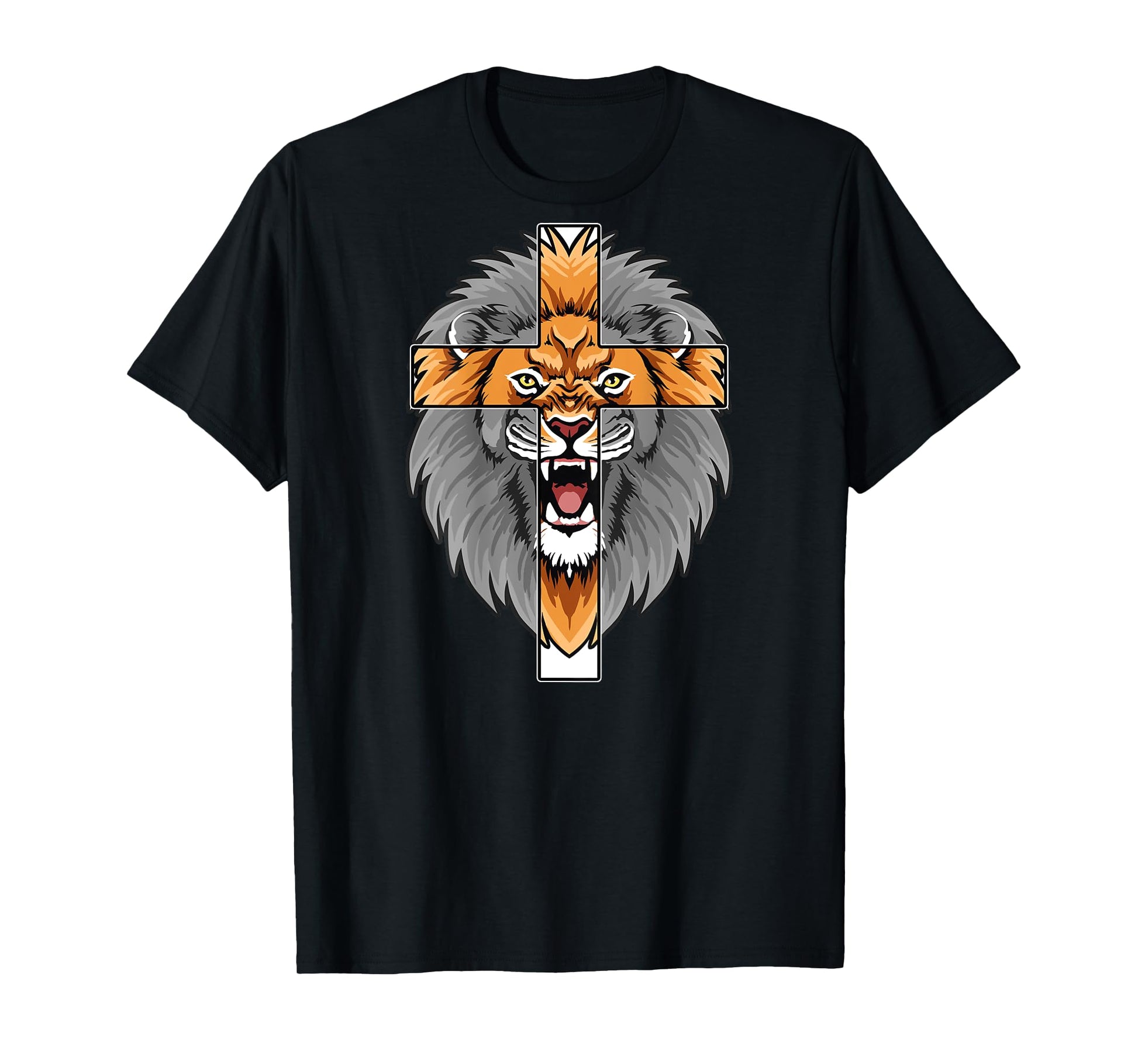 Lion Jesus Cross God Bless Bible The Way Truth Art ON Back T-Shirt