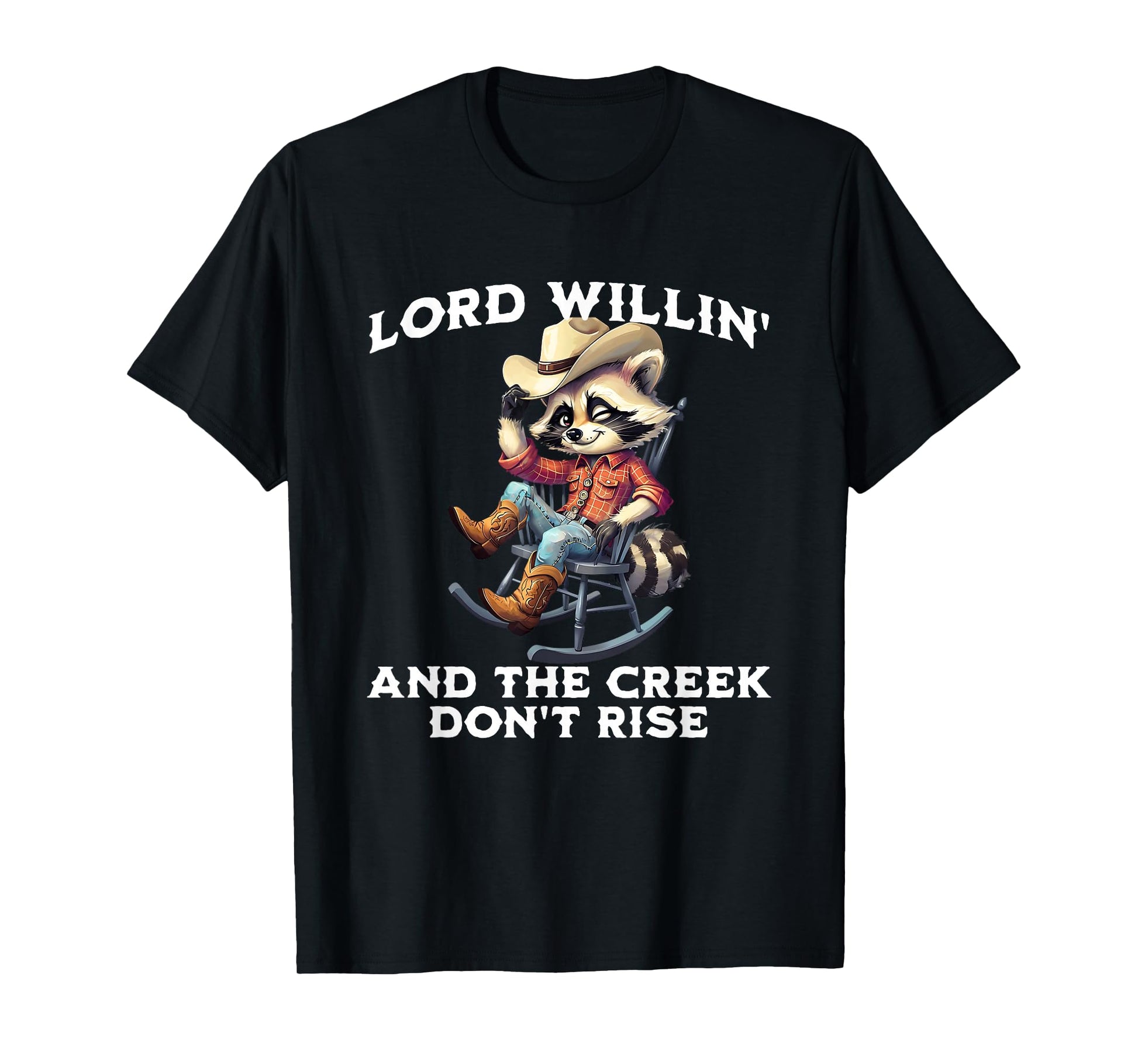 Lord Willin’ Creek Don’t Rise Funny Western Coon Raccoon T-Shirt