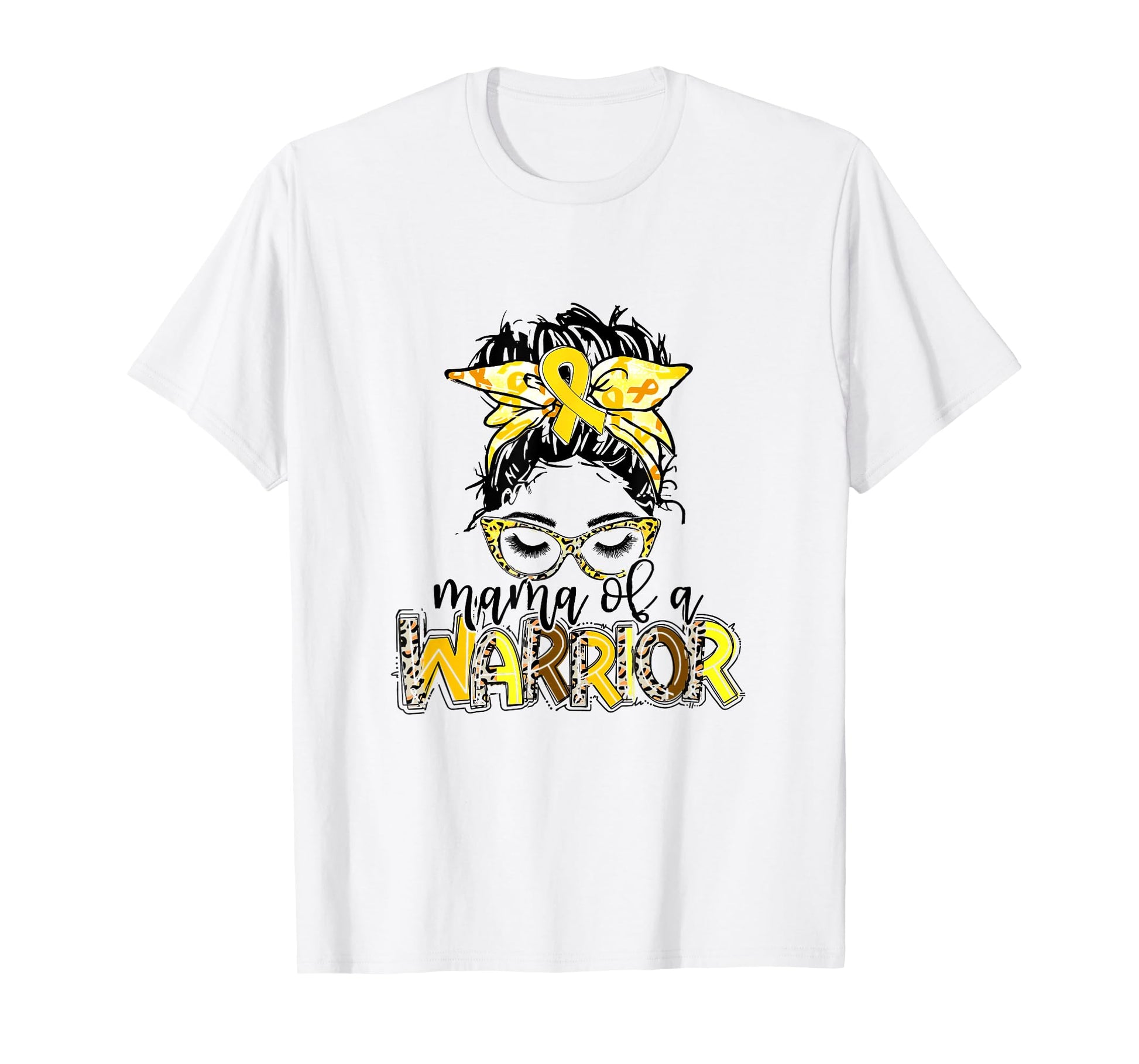 Mama of Warrior Childhood Cancer Ribbon Mom Saying Quote T-Shirt