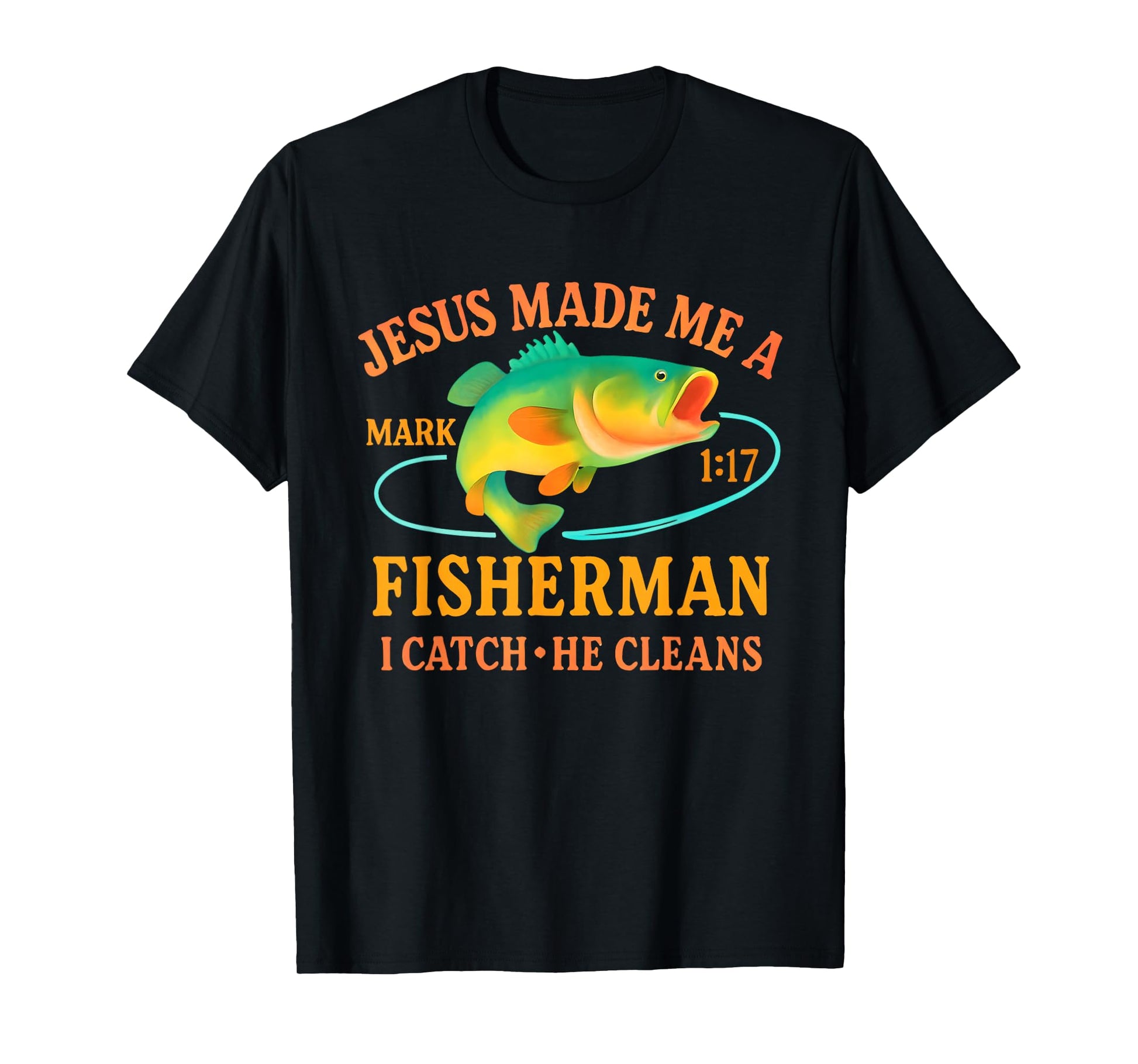 Mens Jesus Made Me A Fisherman Faith Fisherman T-Shirt