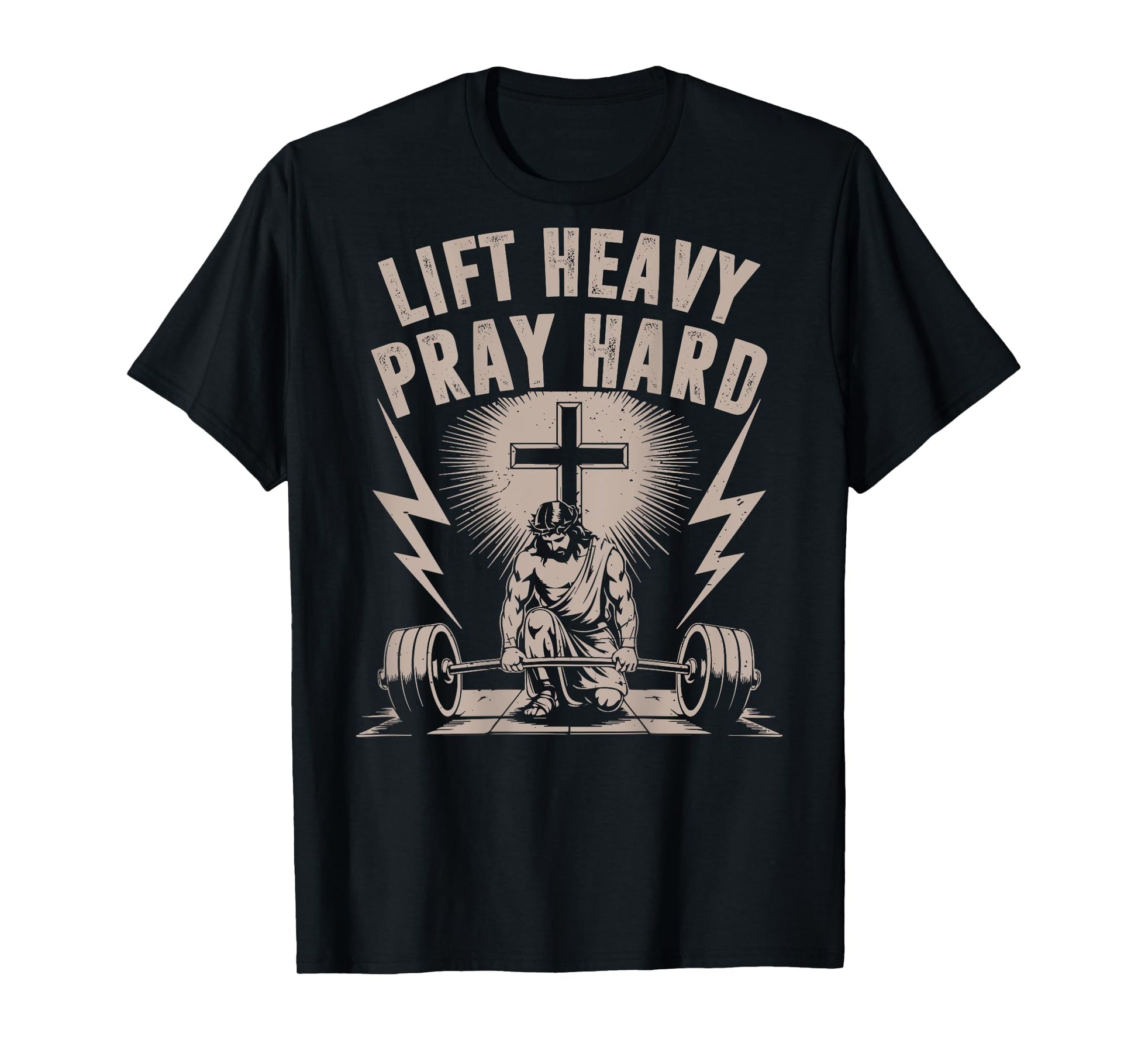 Men's Lift Heavy Pray Hard Christian Workout Jesus Gym Funny T-Shirt