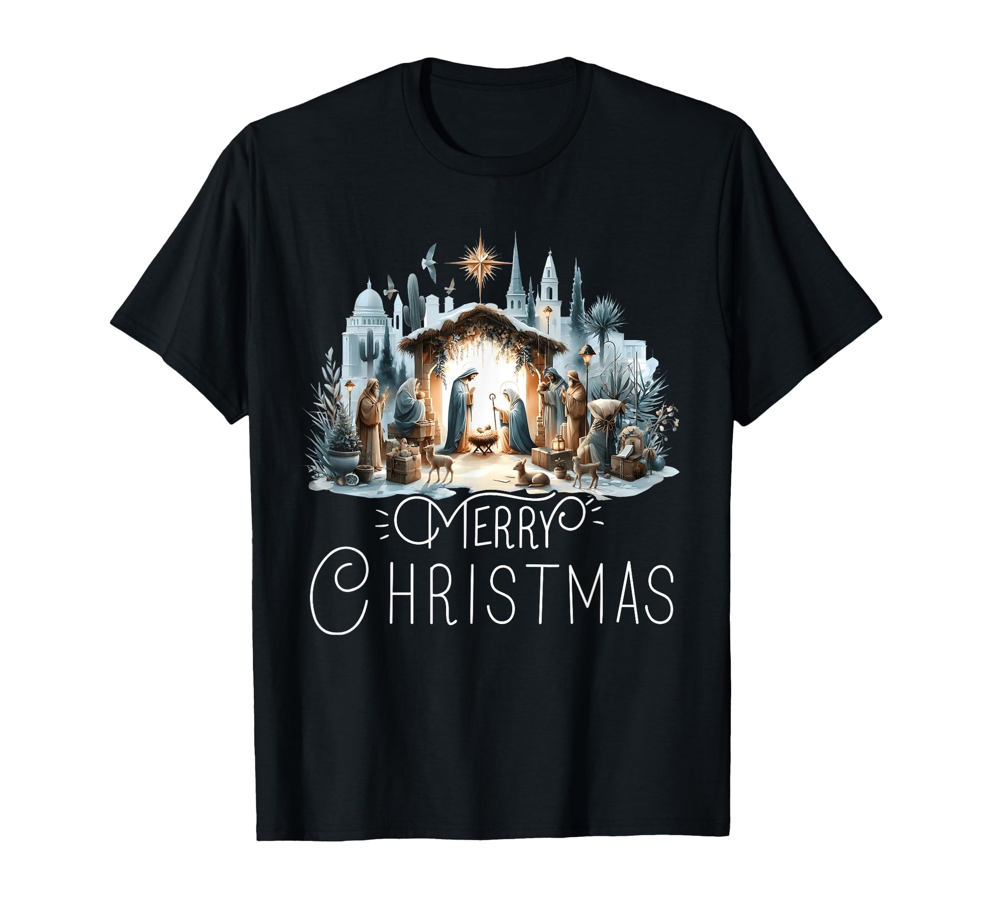 Merry Christmas Nativity Scene North Star Baby Jesus Christ T-Shirt