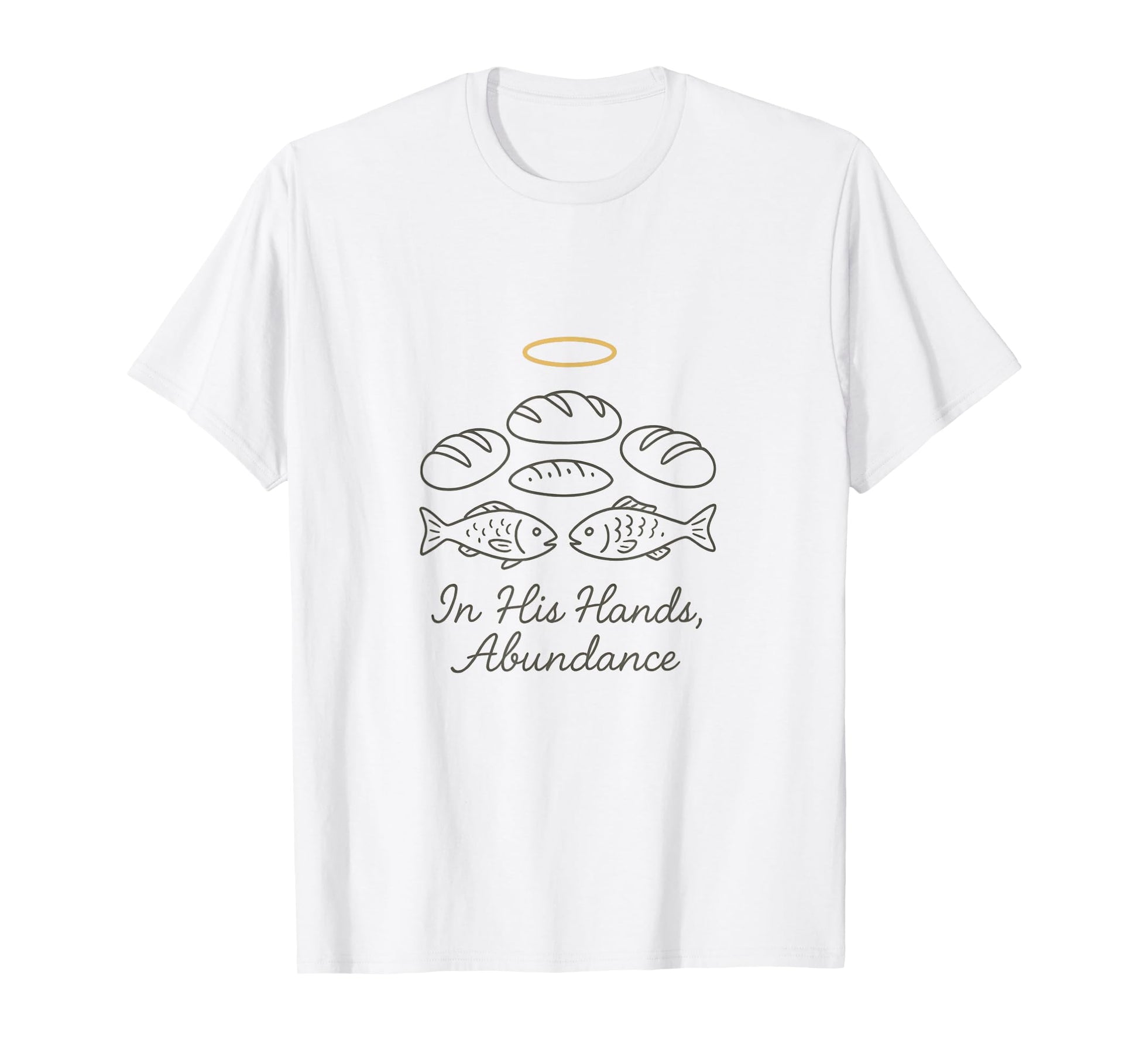 Minimalist Loaves and Fishes Line Art with Halo Christian T-Shirt