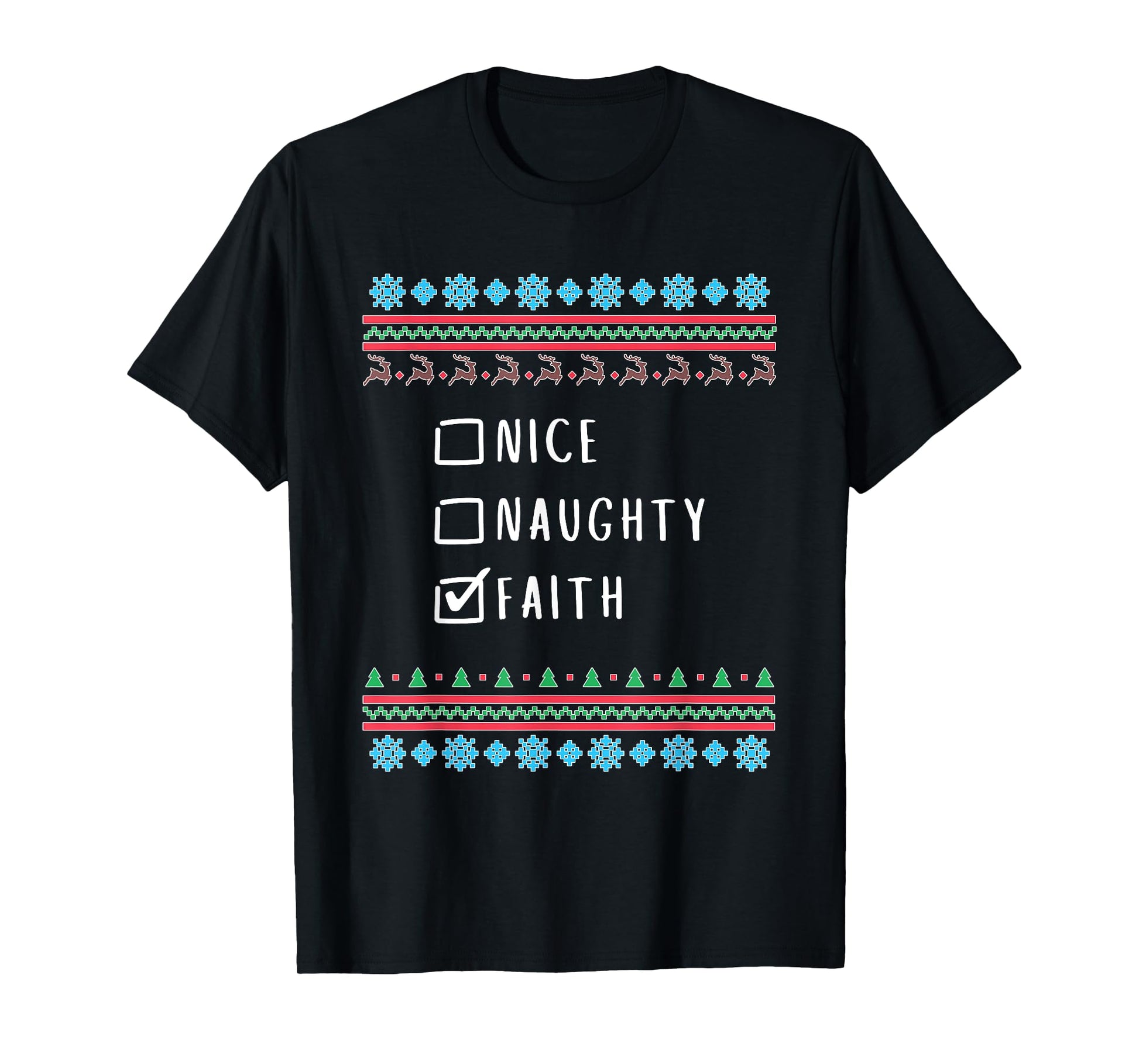 Nice, Naughty, Faith Christmas Ugly Sweater Style T-Shirt