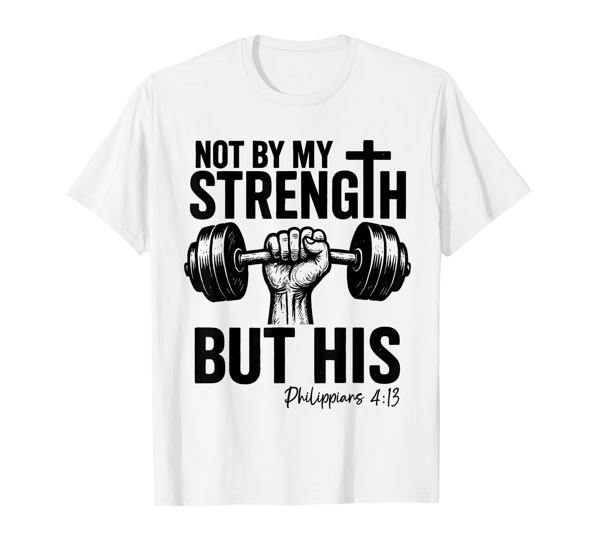 Not by My Strength But His Christian Gym Bible Faith Cross T-Shirt