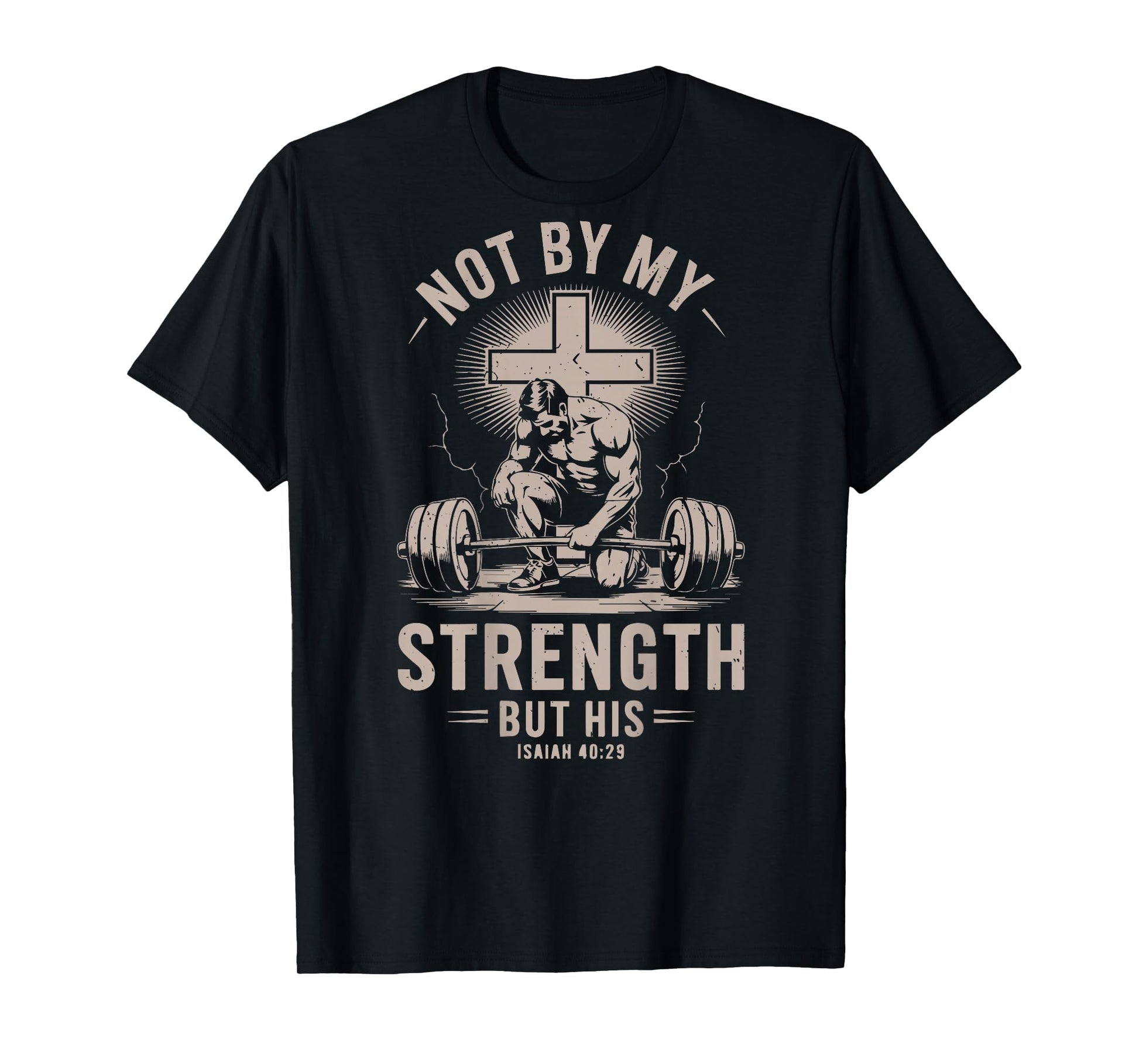 Not By My Strength But His Funny Christian Workout Gym Jesus T-Shirt