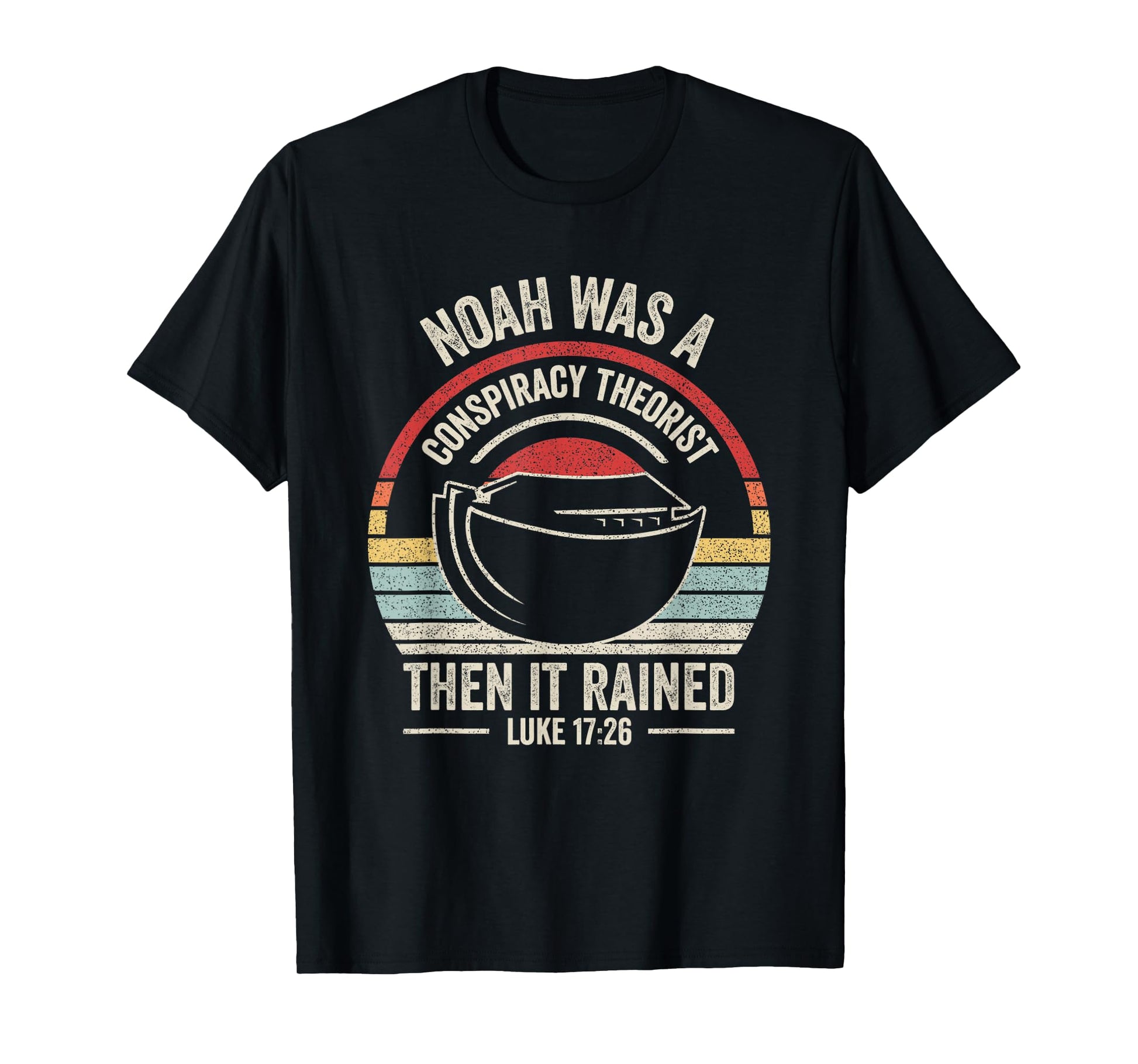Outta Sight! Vintage Retro Noah Was A Conspiracy Theorist Then It Rained Unisex Adult T-Shirt, Black, Small