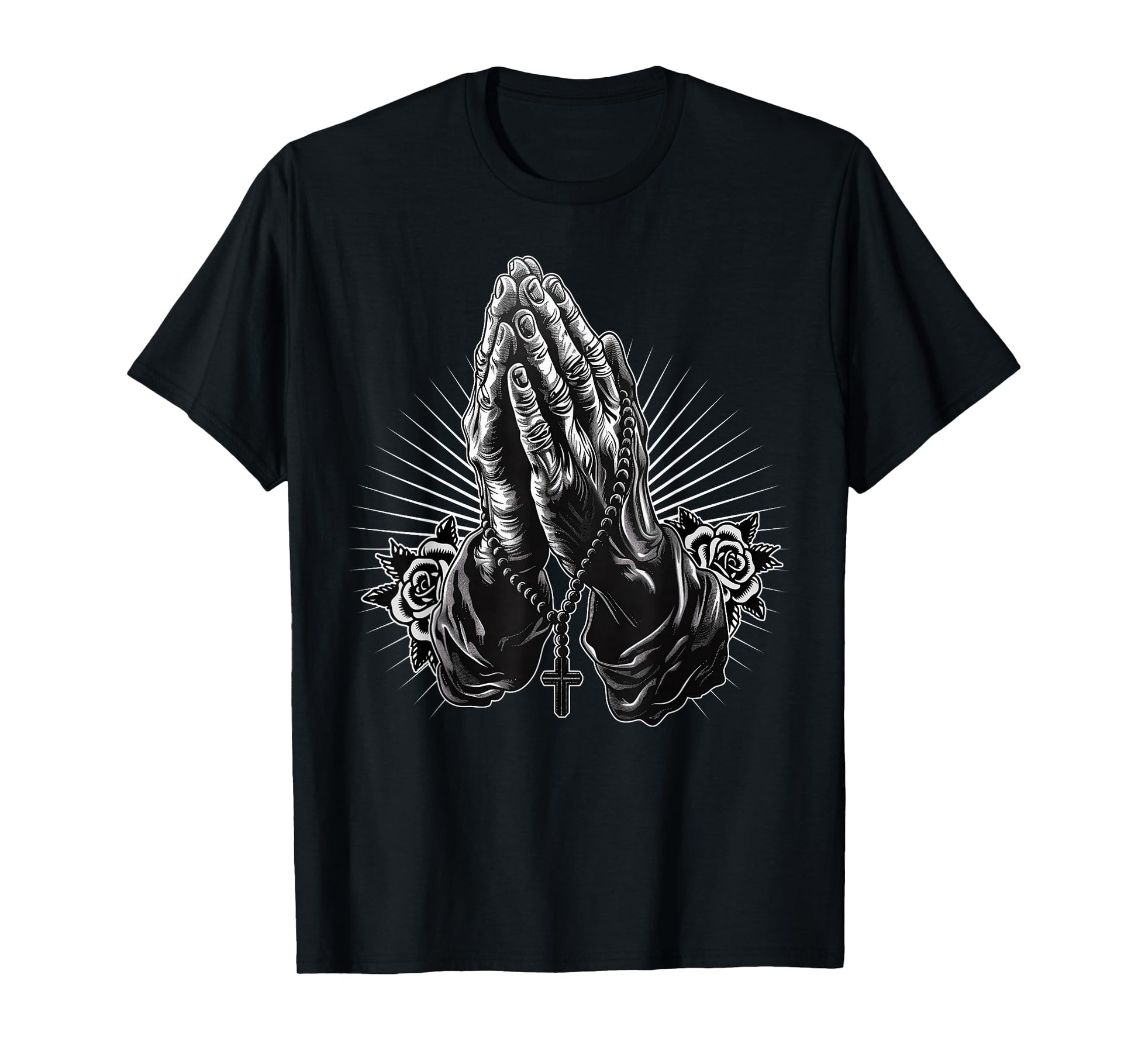 Prayer Hands Catholic Christian Chicano Tattoo Rosary T-Shirt
