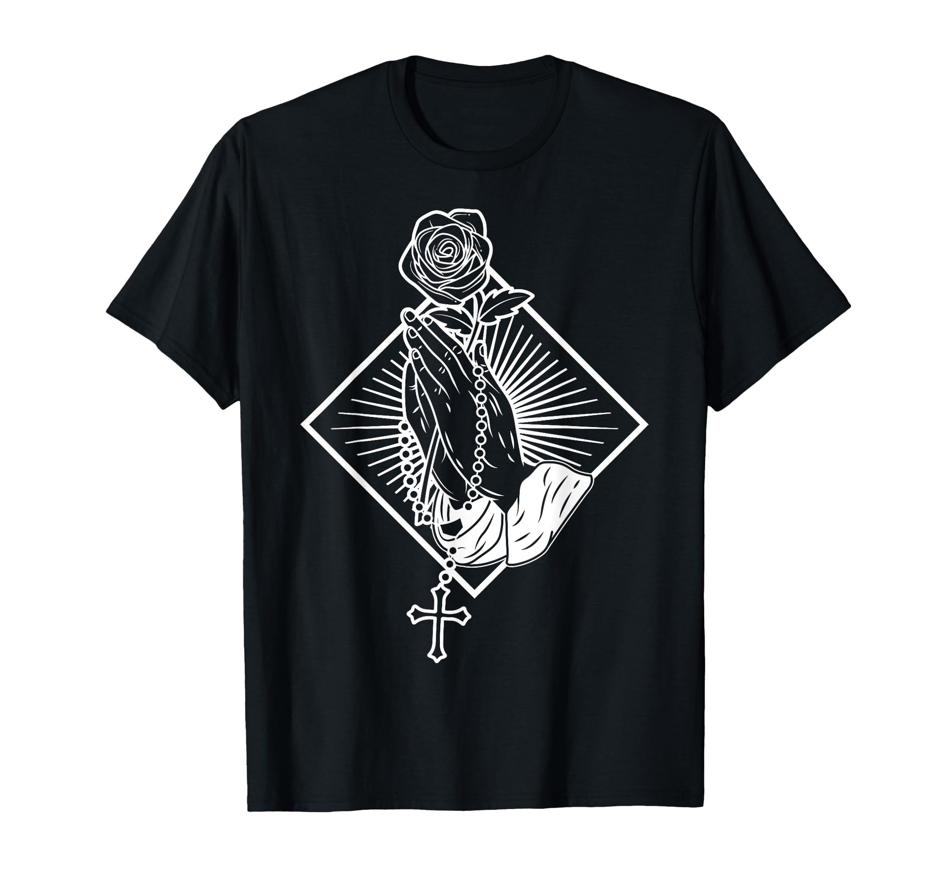 Praying hands with rose and rosary T-Shirt