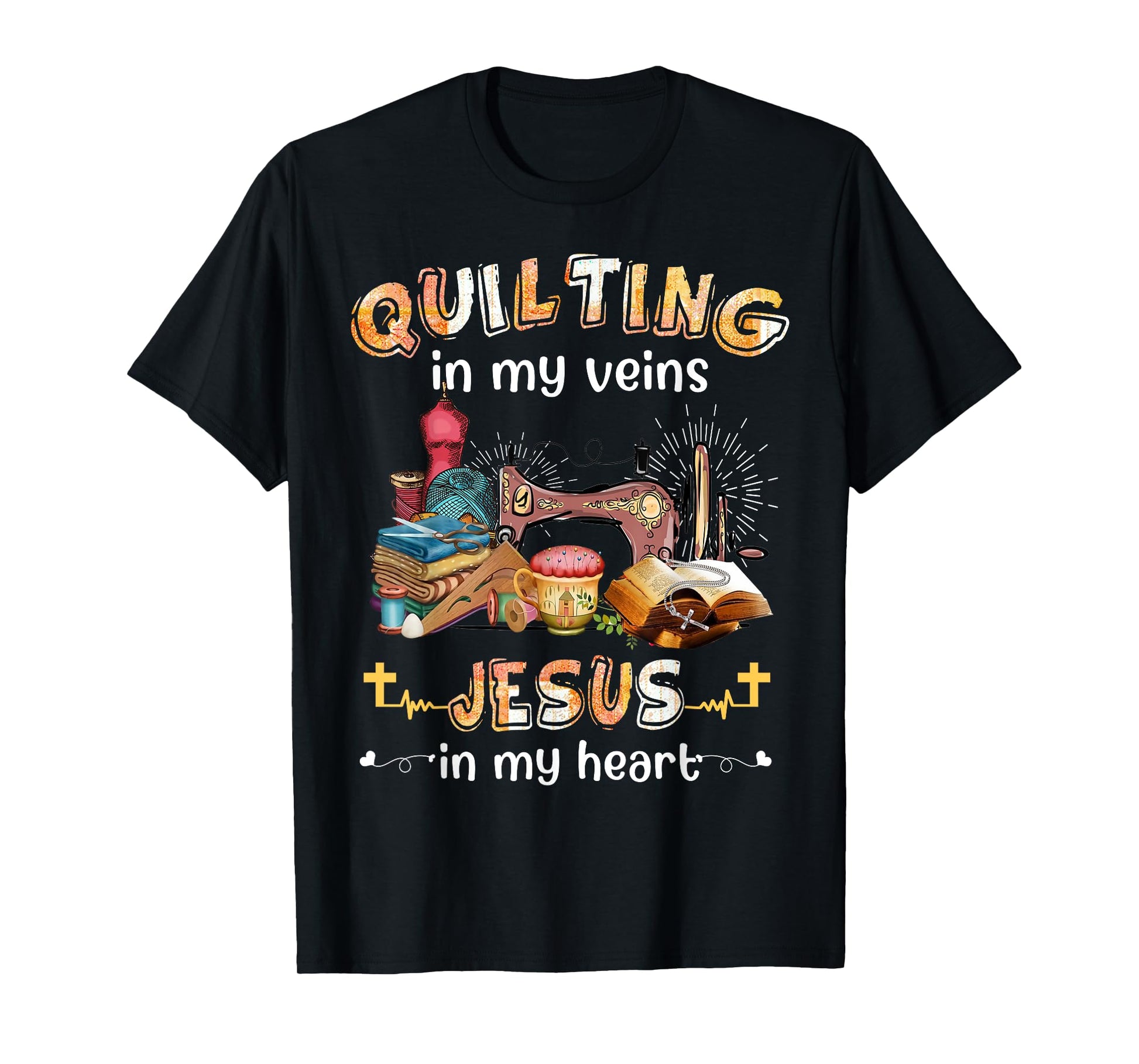 Quilting In My Veins Jesus In My Heart Funny Quilters T-Shirt
