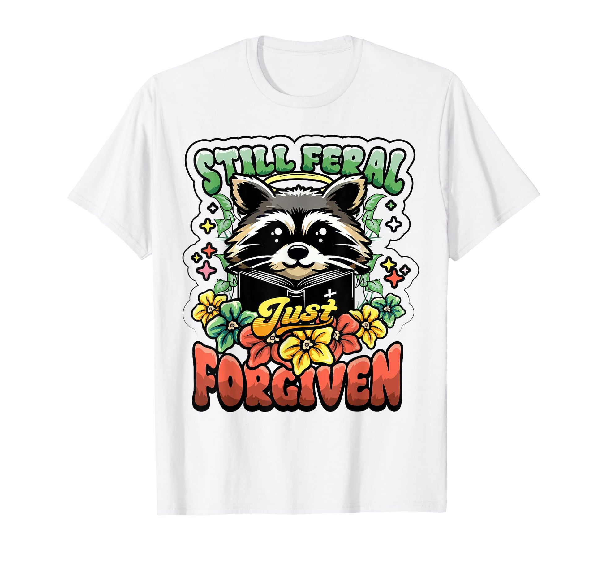 Religious Christian Raccoon Still Feral Just Forgiven Faith T-Shirt
