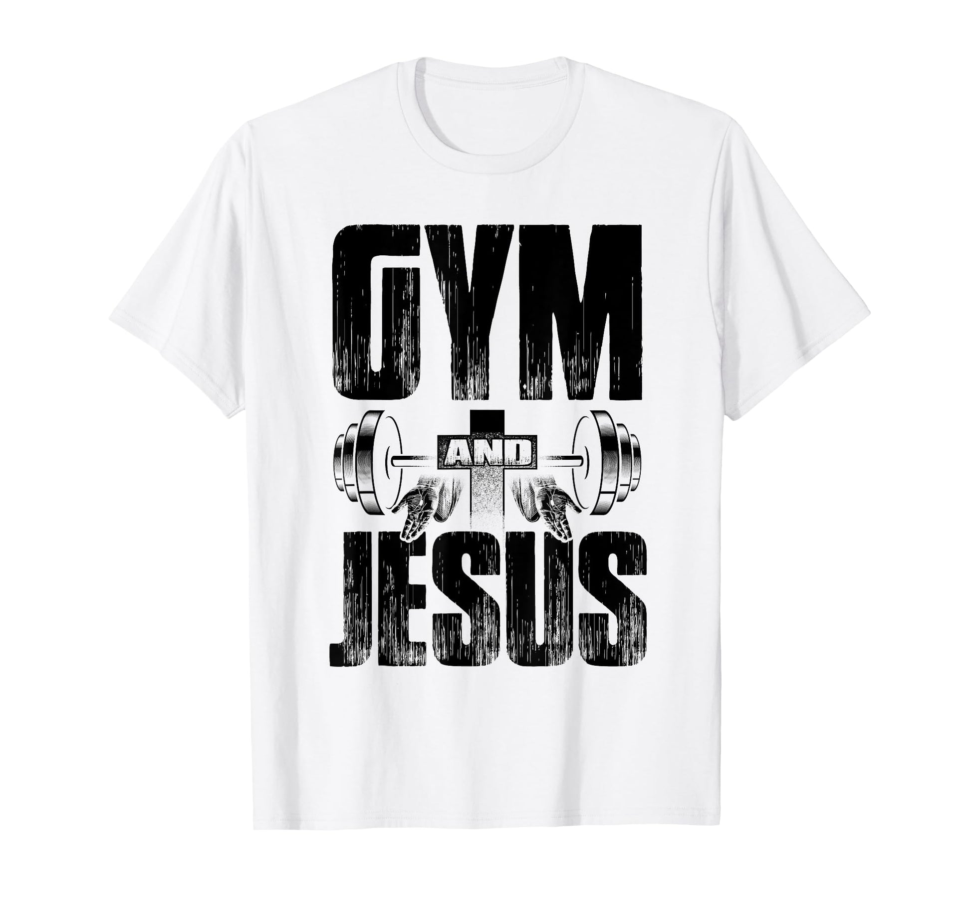 Religious Workout Gym & Jesus Barbell Lifting Weights Cross T-Shirt