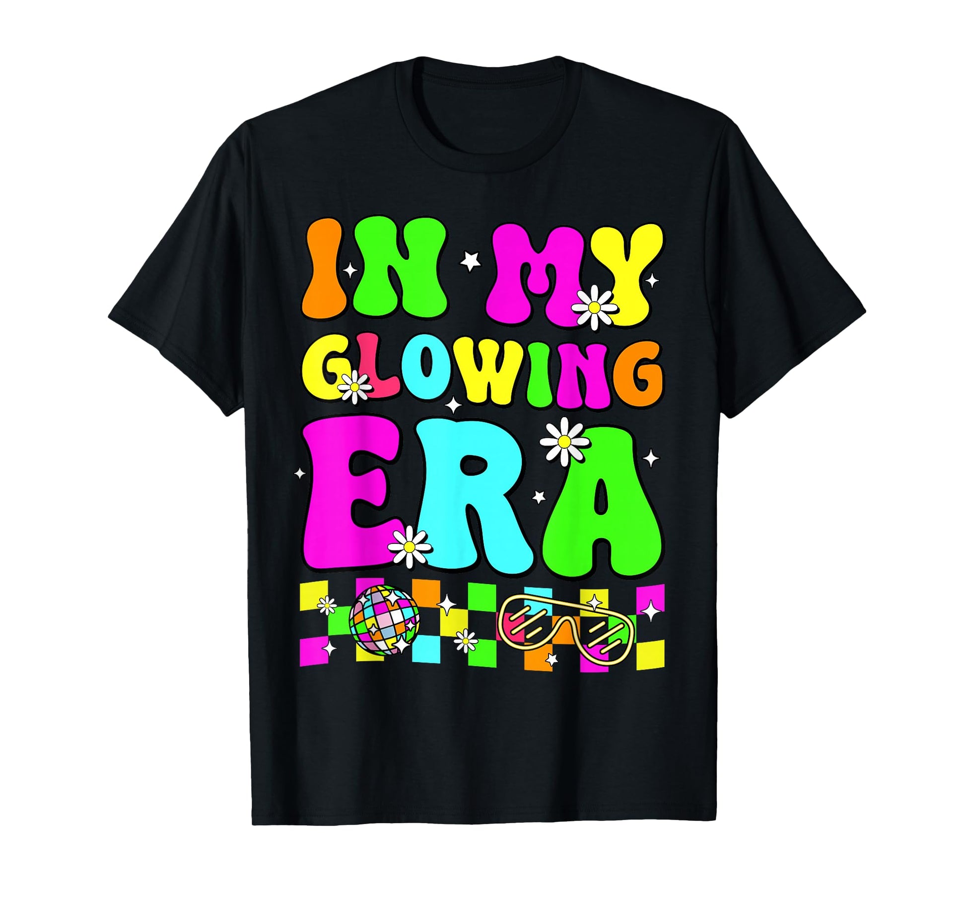 Retro In My Glowing Era Colorful Unisex-Adult T-Shirt, Black, Small, Short Sleeve, Tie-Dye, Cartoon, Casual, SHIRT, All Seasons, Family Gatherings & Holidays