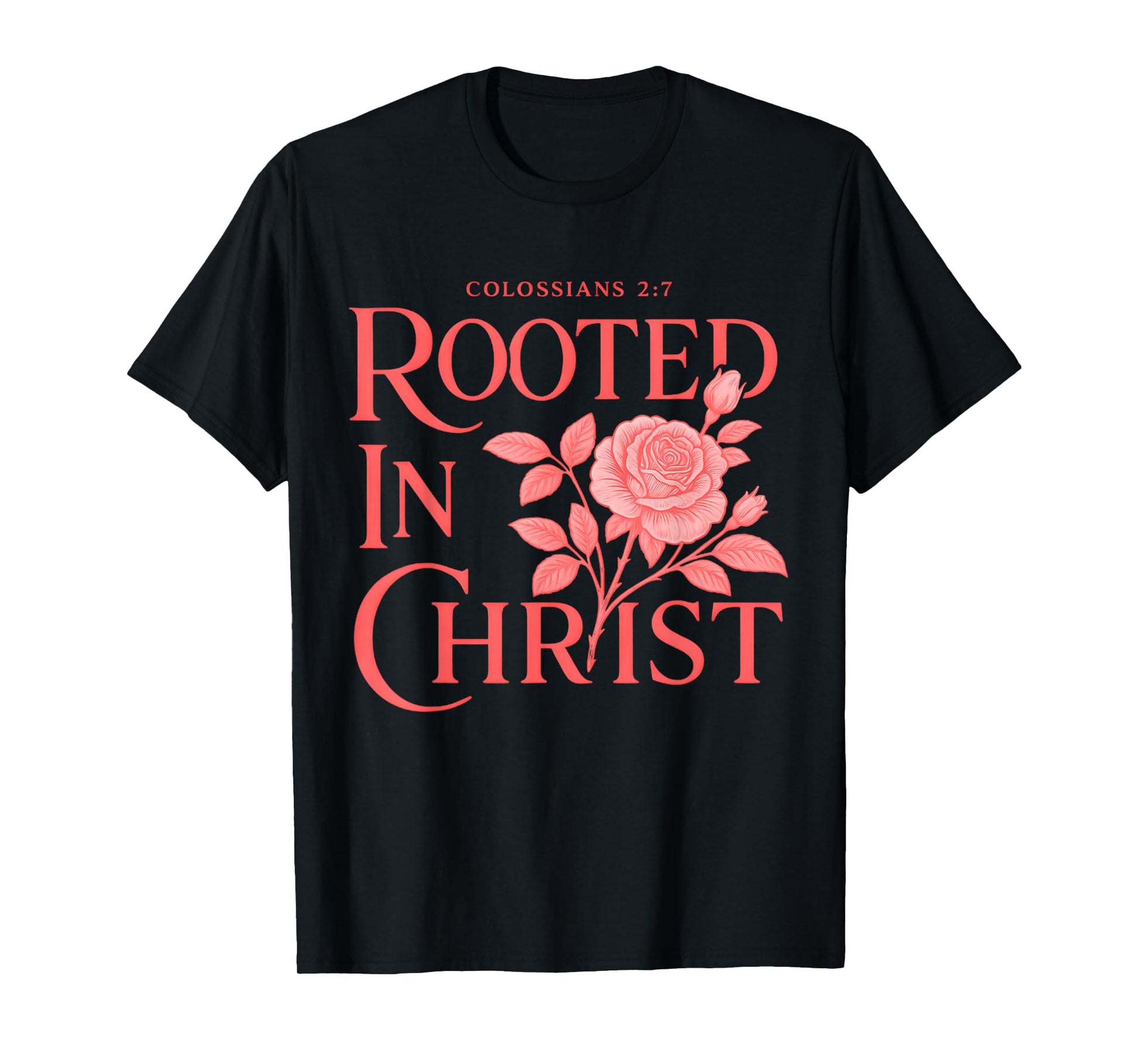 Rooted in Christ Boho Floral Rose Christian Bible Verse T-Shirt