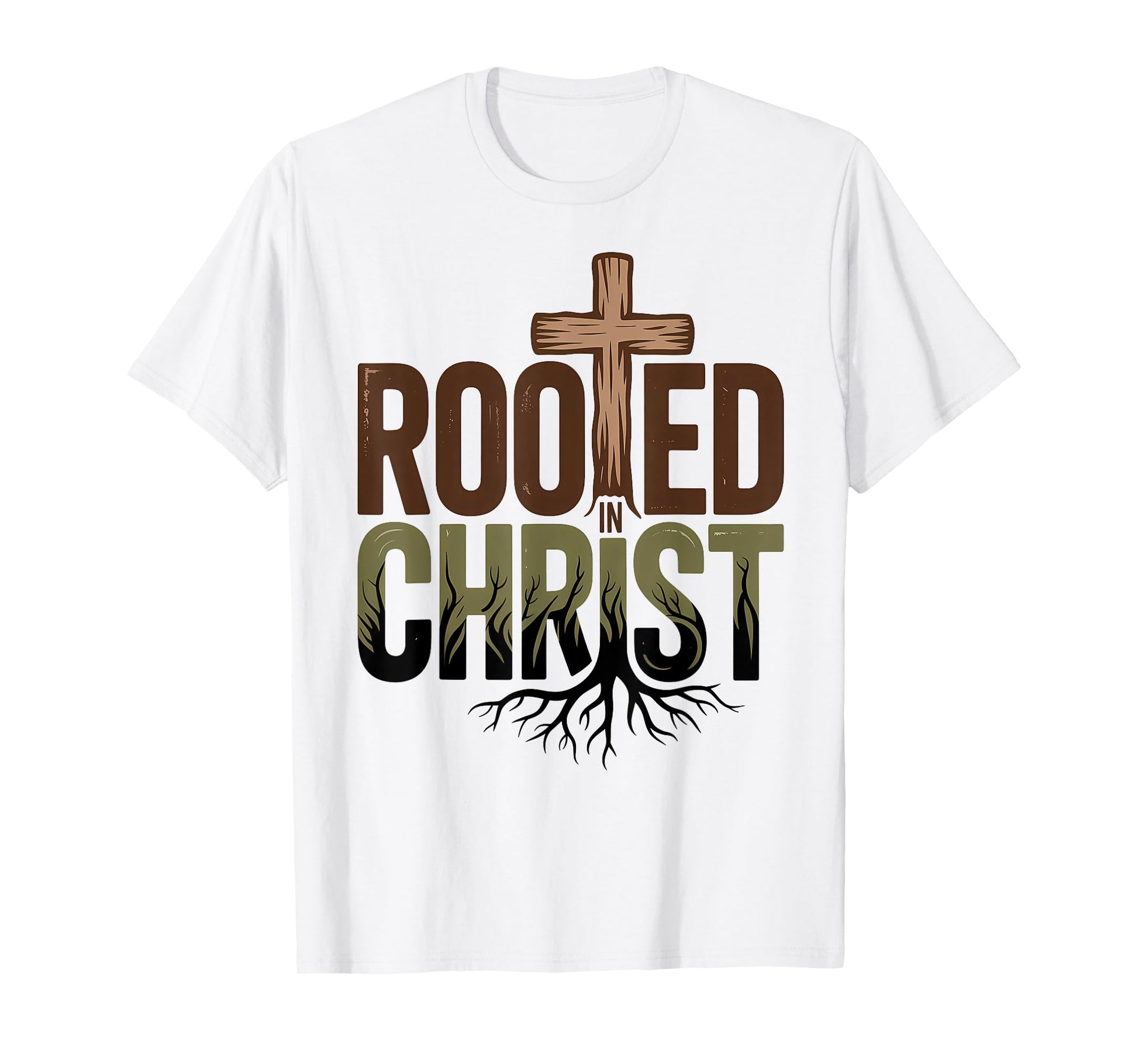 Rooted in Christ Jesus Christian Faith Cross T-Shirt