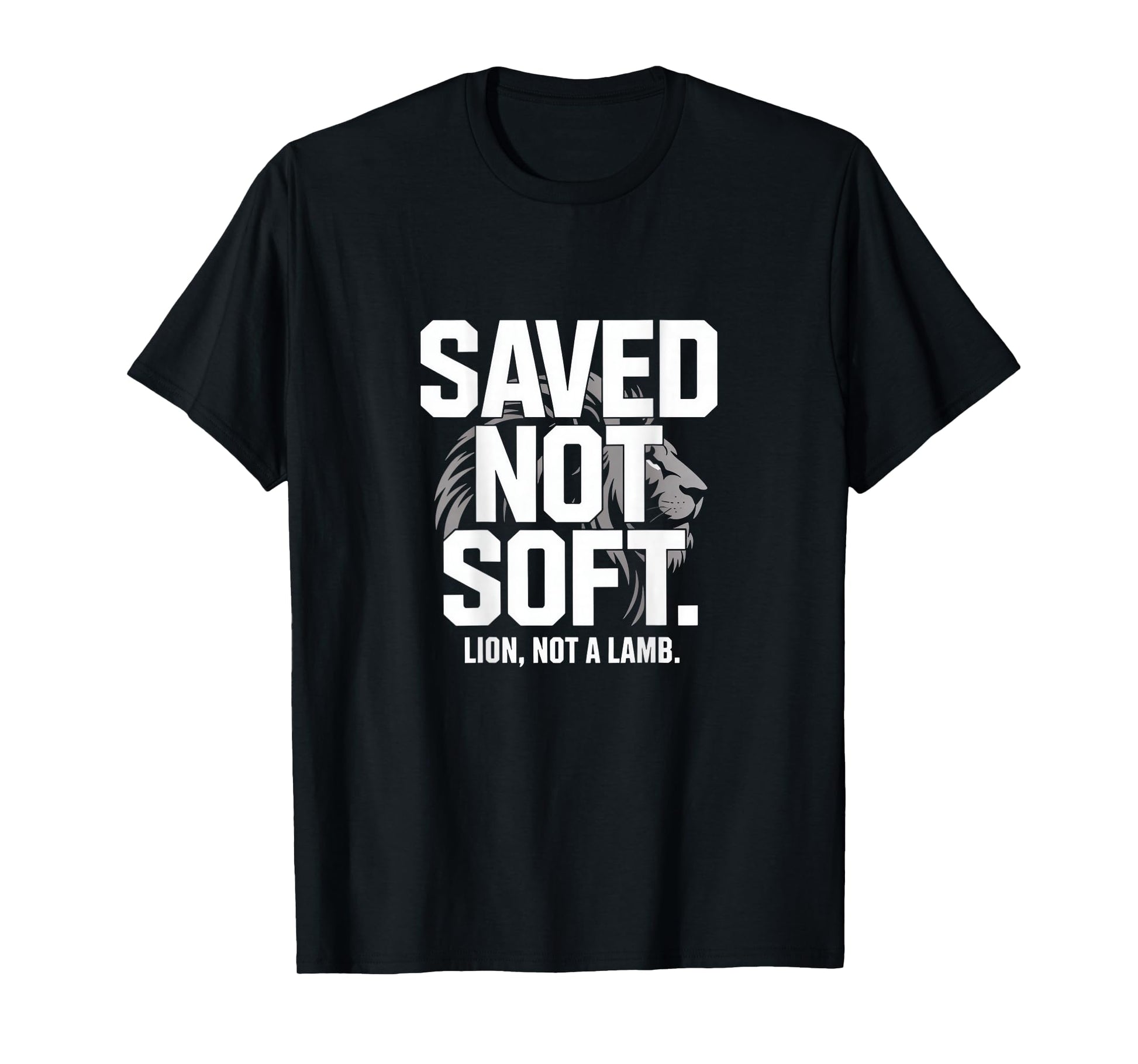 Saved Not Soft Lion Not A Lamb Christian Bold Backprint T-Shirt