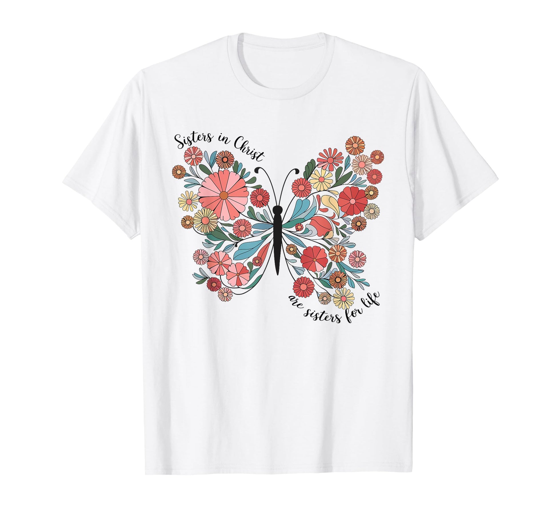 Sisters In Christ Christian Bible Verse Religious Butterfly T-Shirt