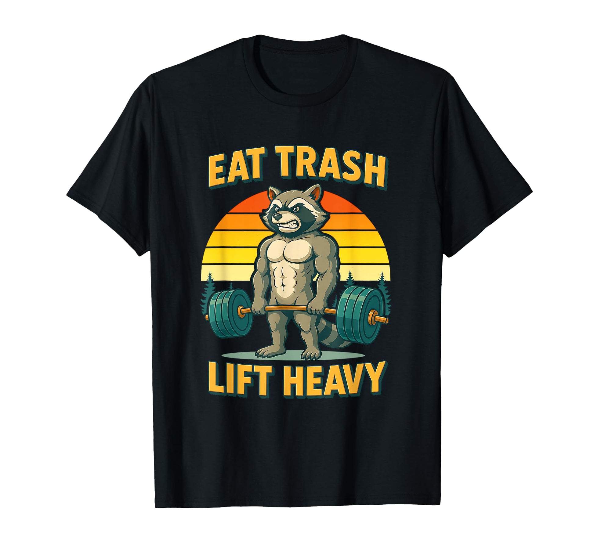 Six Pack Raccoon Gym Weight Training Eat Trash Lift Heavy T-Shirt