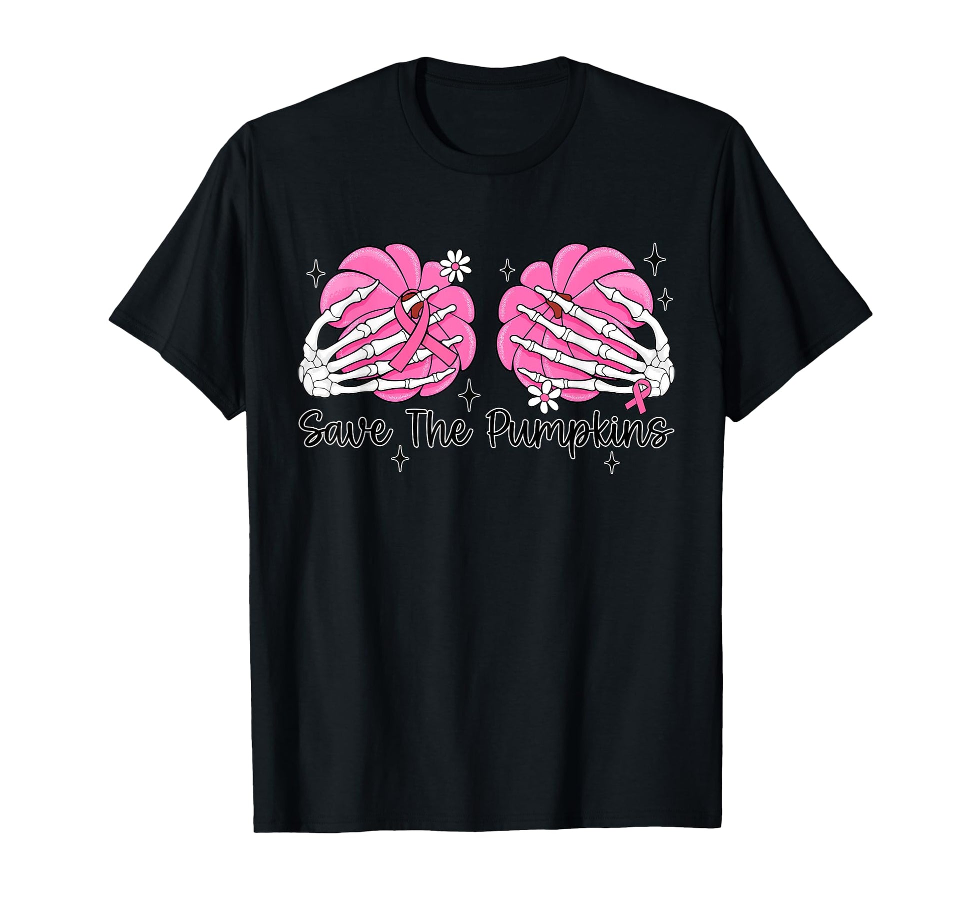 Skeleton Hand Boobs Save The Pumpkin Breast Cancer Halloween T-Shirt