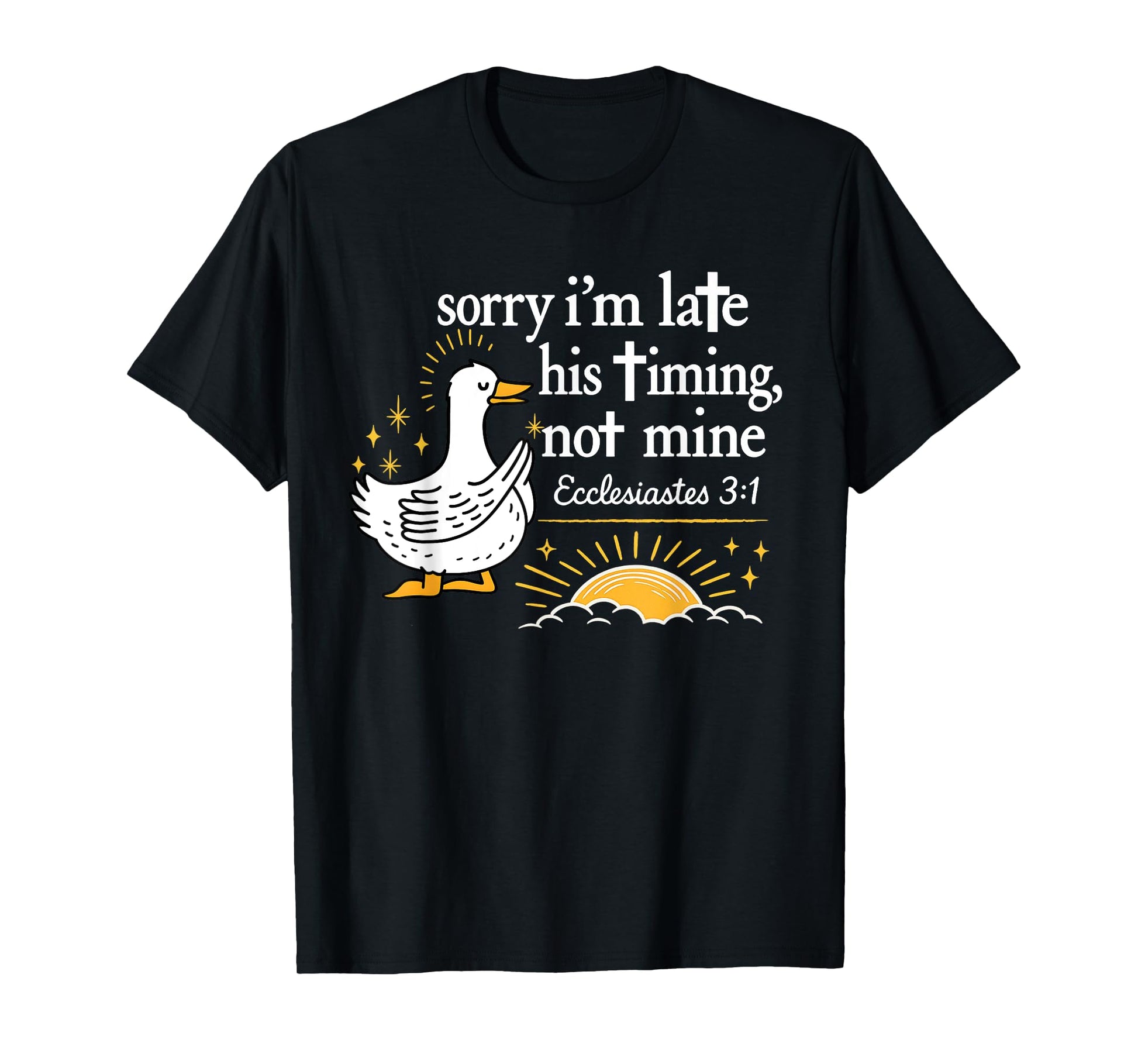 Sorry Iβm Late Bible Faith Jesus Religious Christian Goose T-Shirt