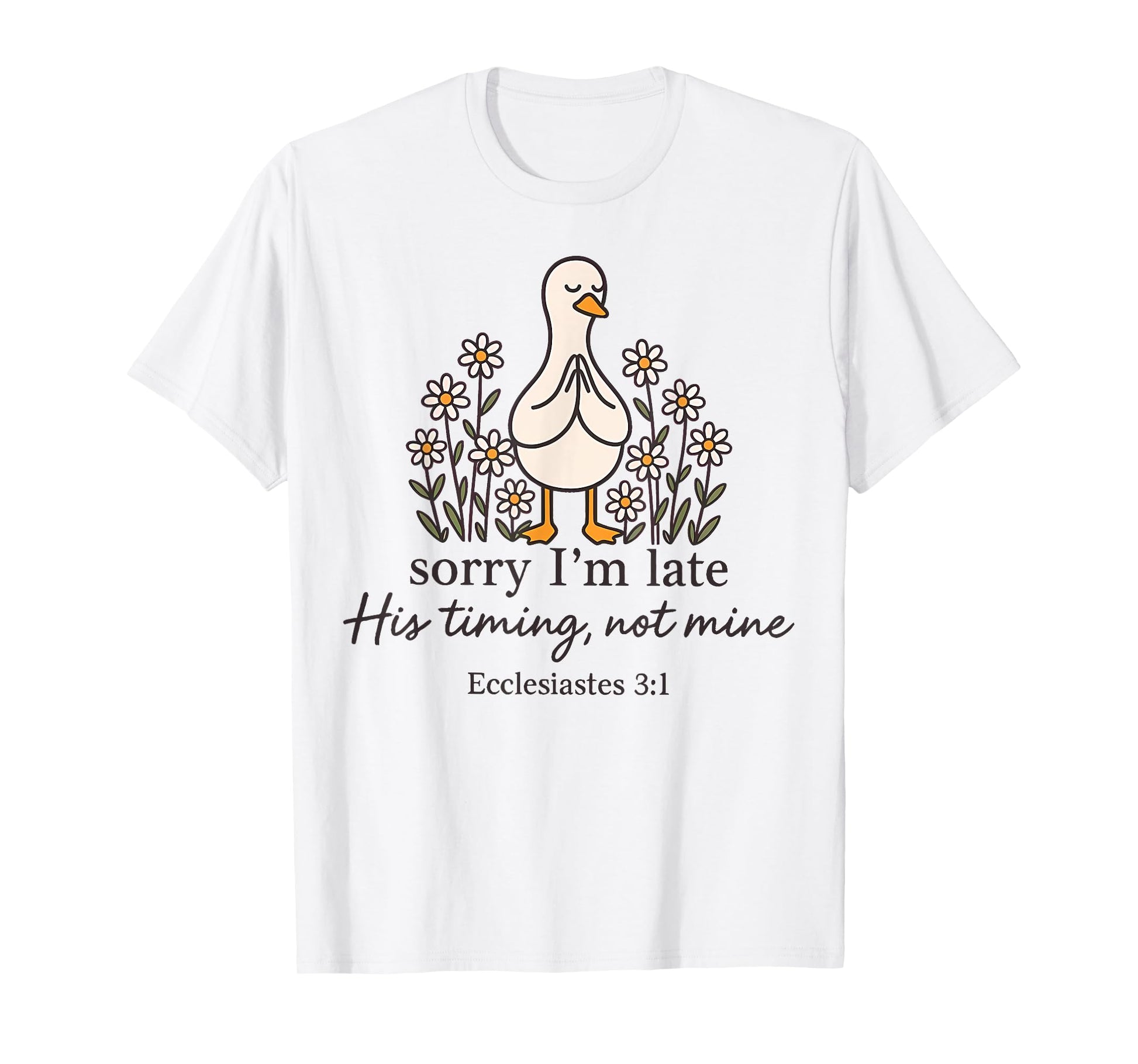 Sorry I'm Late his Timing not Mine, Funny Christian Goose T-Shirt