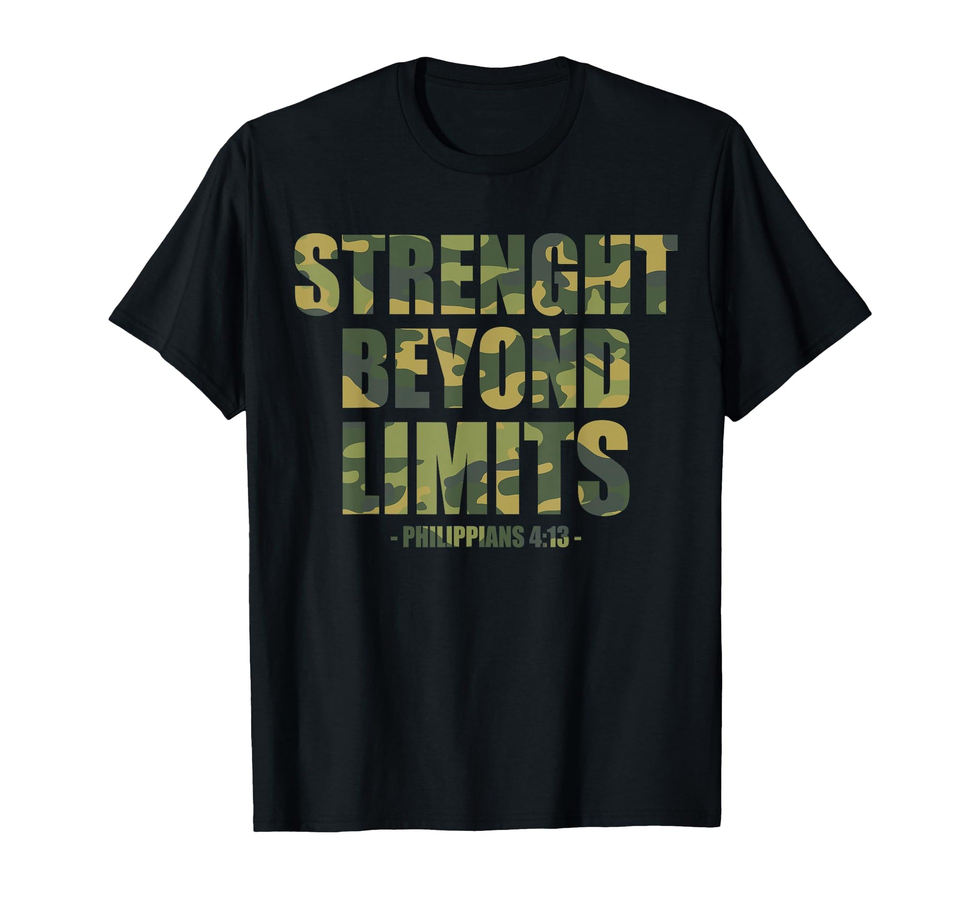 Strenght Beyond Limits Christian Men Camo Scripture Gym Work T-Shirt