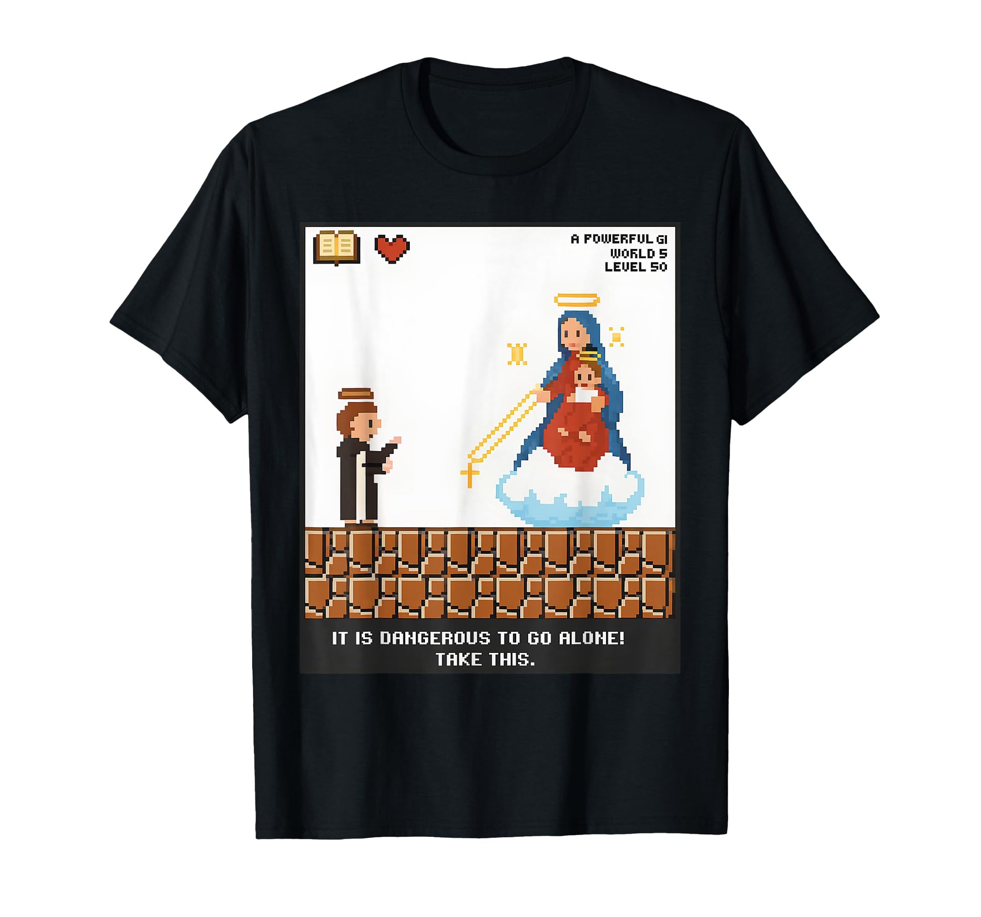 Take This Mary and Rosary Pixel Funny Catholic Video Game T-Shirt