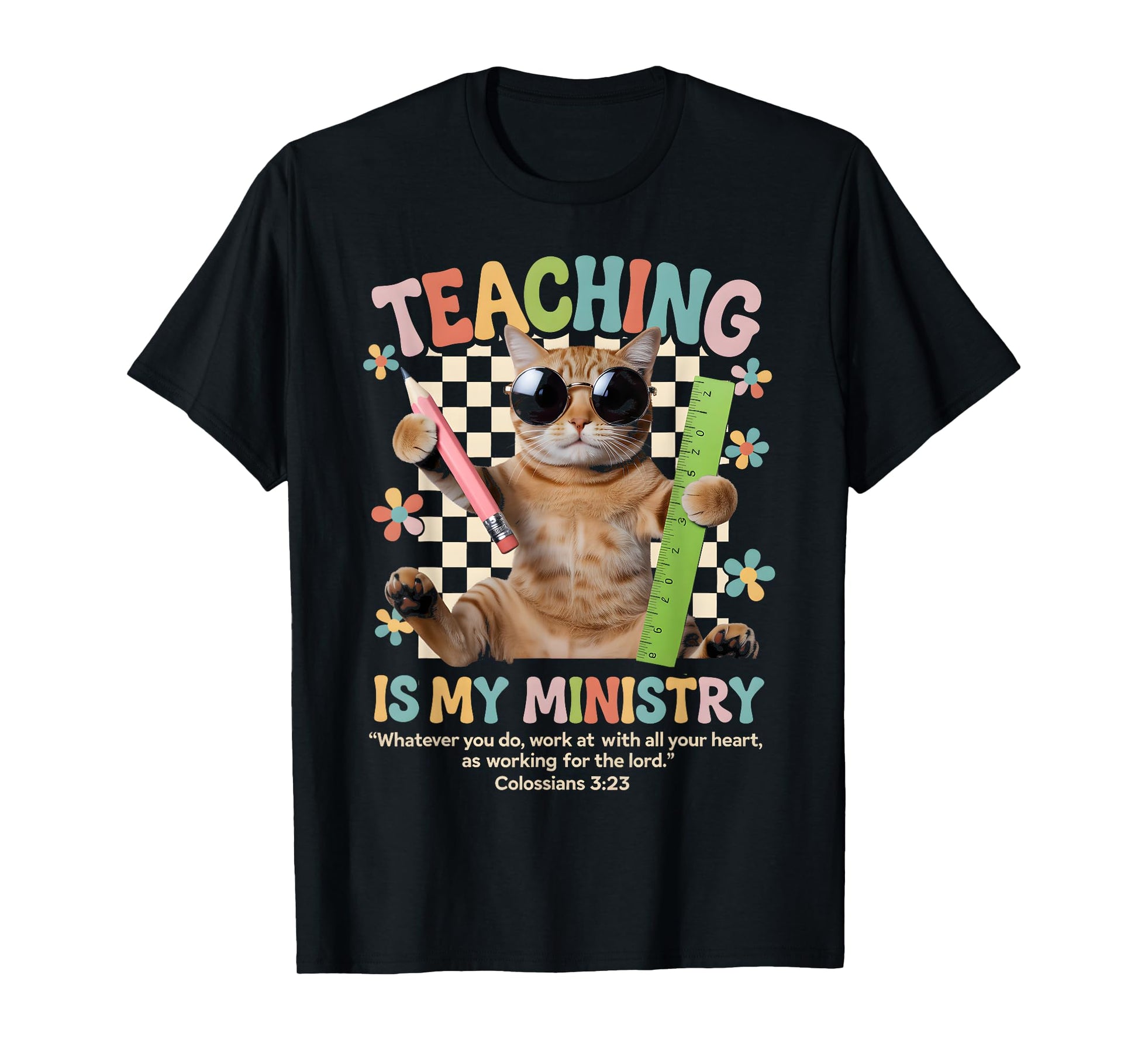Teaching is My Ministry Cute Cat Retro Bible Verse Design T-Shirt