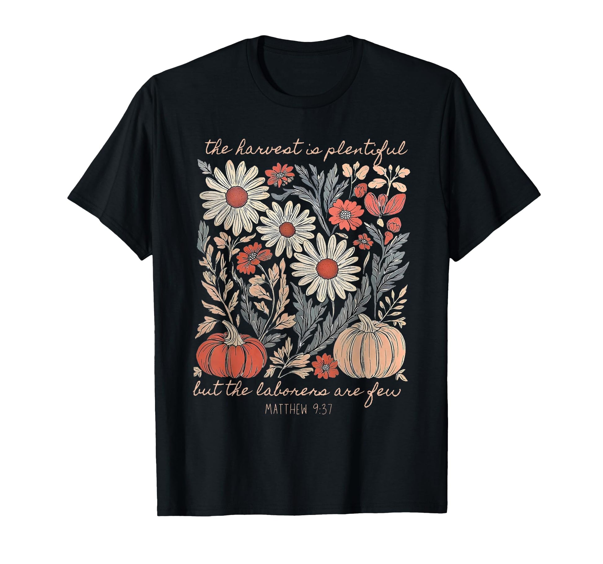 The Harvest Is Plentiful Wildflower Christian Pumpkin Autumn T-Shirt