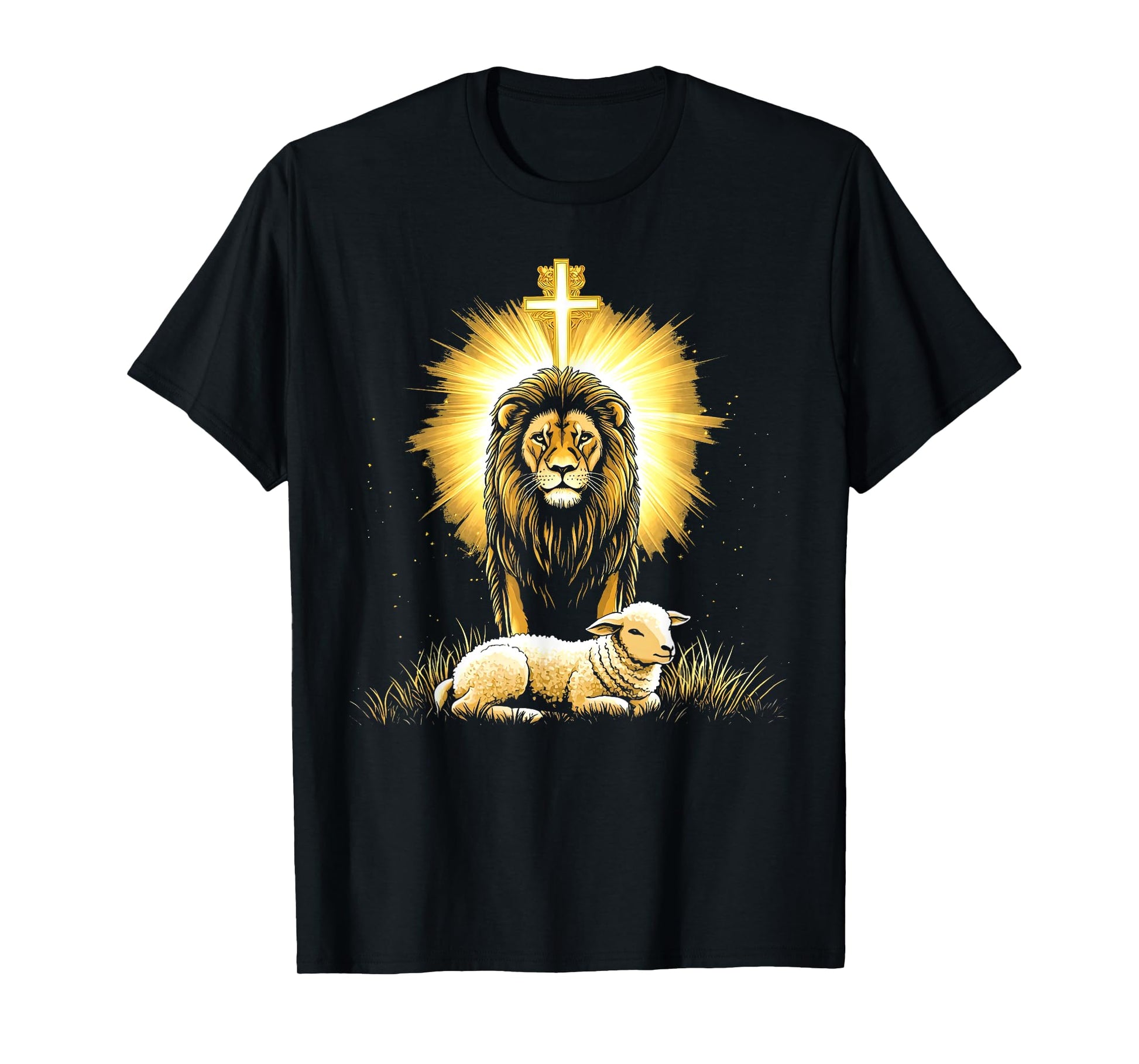 Vintage Lion And Lamb Cross Jesus Religious Faith Christian T-Shirt