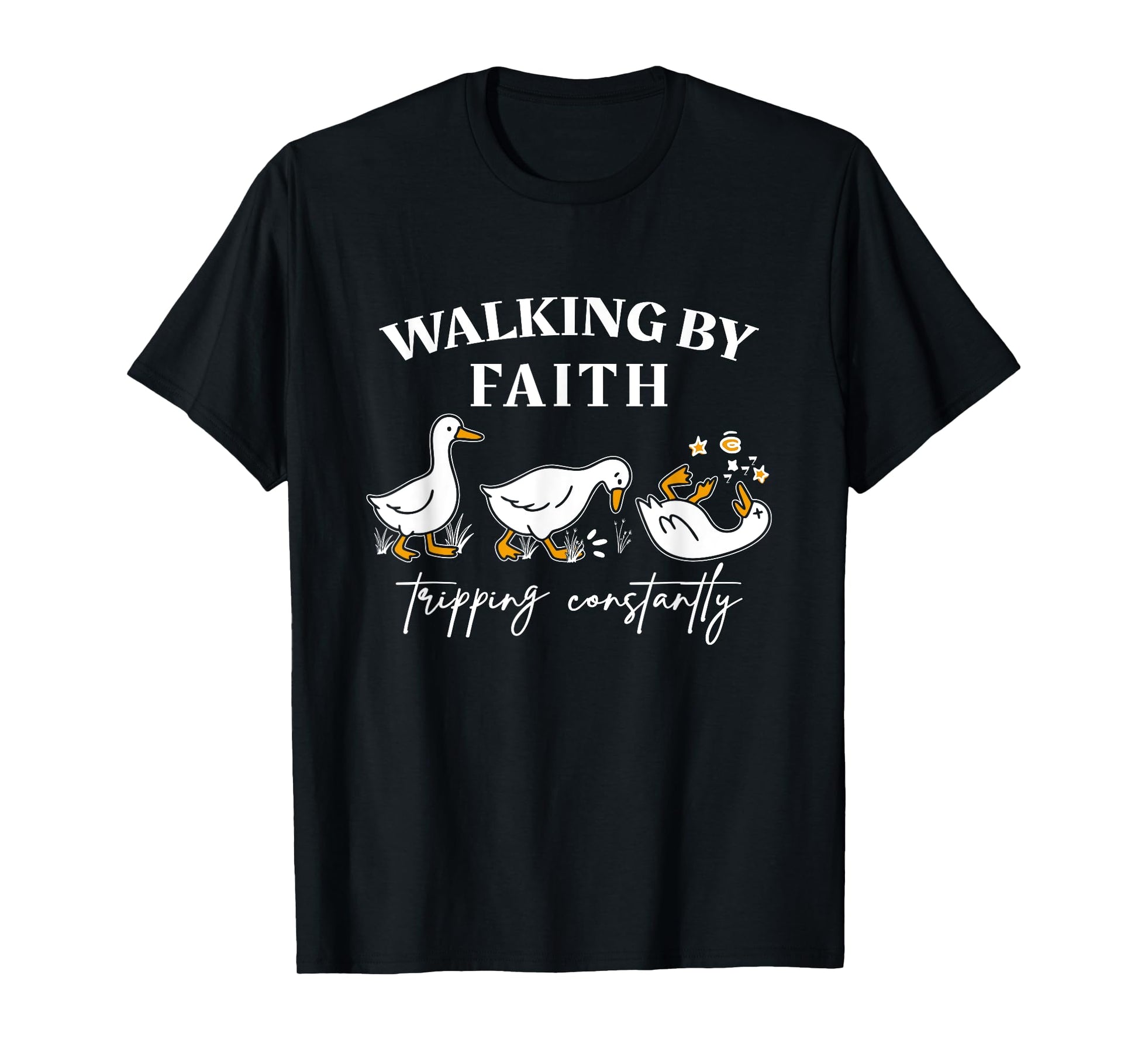 Walking by Faith Tripping Constantly Funny Tripping Geese T-Shirt