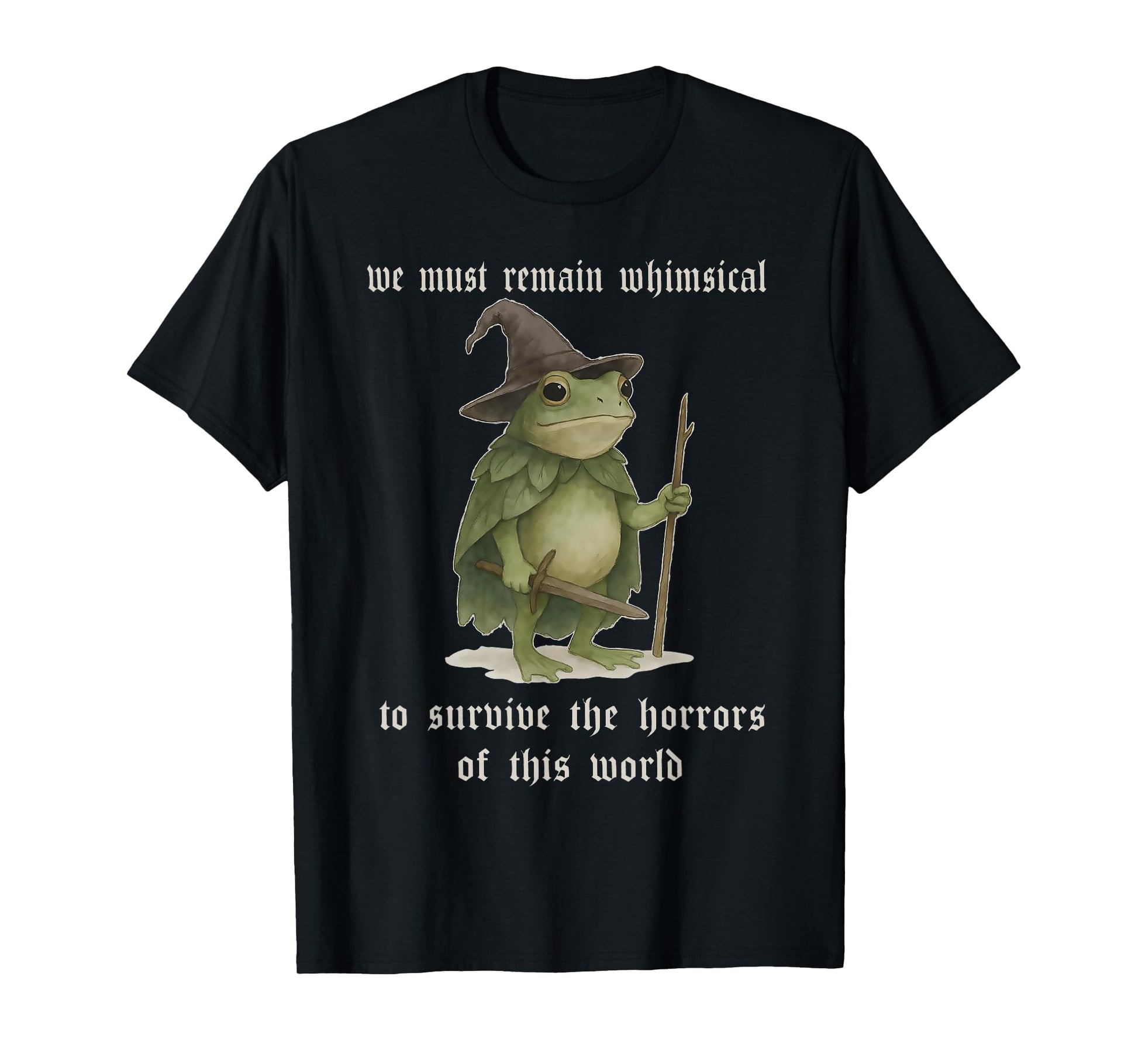 We Must Remain Whimsical Frog Wizard Fantasy Funny Meme T-Shirt
