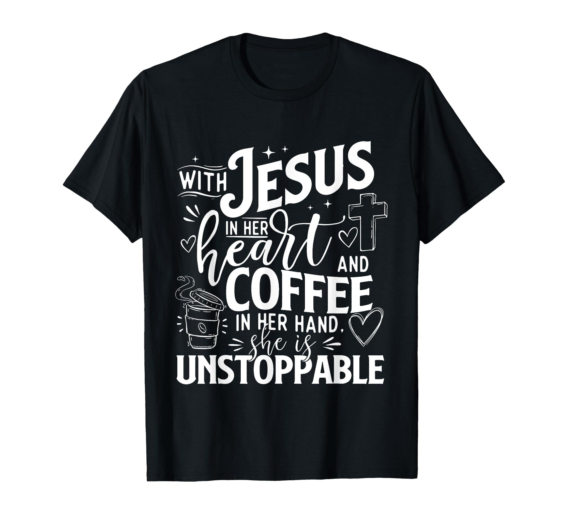 With Jesus In Her Heart And Coffee In Her Hand - Faith T-Shirt